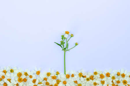 Spanish needles or Bidens alba flowers with its tree and leaves on white papar background.