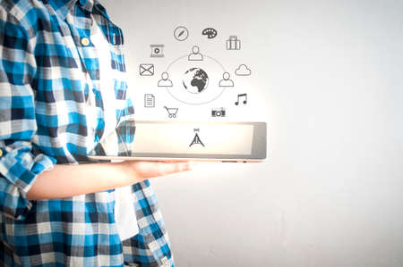 Businessman using digital tablet,social media concept.