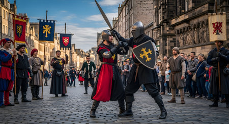 Unidentified people in medieval costume at Edinburgh Castle Festival