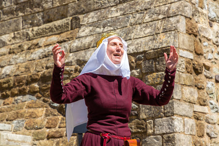 DOVER, THE UNITED KINGDOM - JUNE 28, 2022: Medieval performance in Dover Castle in a sunny summer day in Dover, UK