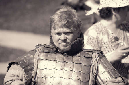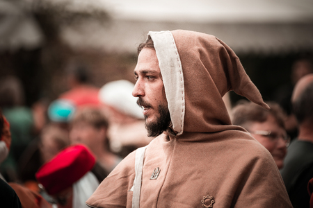 Russia, Priozersk 06.07.2014 Portrait of a man in a medieval costume at the festival of historical reconstruction Russian Fortress