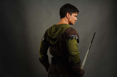 Portrait of medieval man wearing vintage period costume.