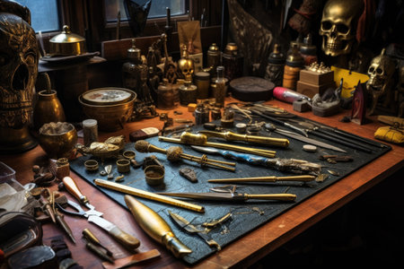 artisans tools for gold foil beating, created with generative ai
