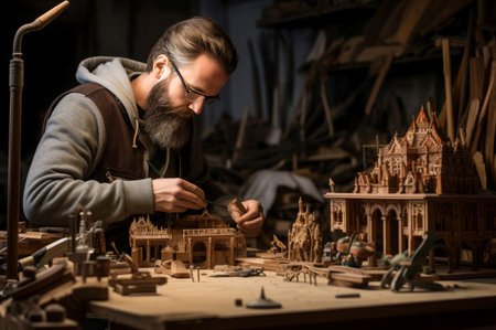 sculptor, carving intricate design into stone block, created with generative ai