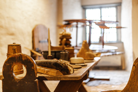 work table with old tools of the artisan shoemaker