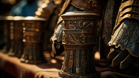 Close up of middle ages armor of the knight. Historic armoring used in combat battles.