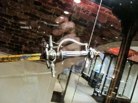 St Petersburg, Russia - June 14, 2018: Museum of Blade Weapons. Exhibits of swords, swords and daggers. Swords, machetes and other cold steel.