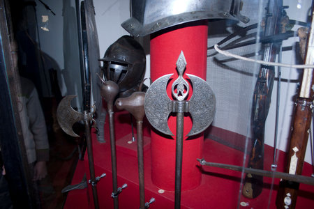 ISTANBUL, TURKEY - SEPTEMBER 21, 2019: Ancient Turkish weapons in the Museum. Axe