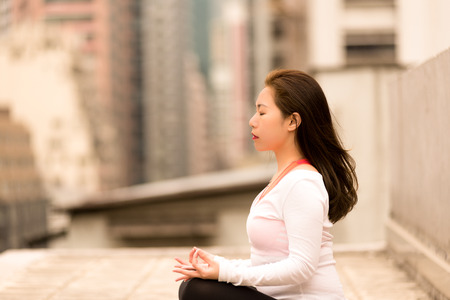 Yoga fitness lifestyle healthy woman relaxation doing a meditation. Yoga meditating outdoor with zen on sitting position. Young exercise concept.