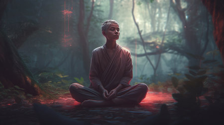 Tranquil Serenity: Meditative Practice in a Beautiful and Peaceful Setting. Generative AI