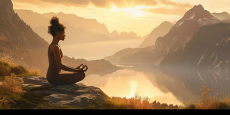A masterful photograph depicts a person sitting in profound meditation in the heart of a tranquil wilderness Every intricate detail of nature from the delicate ripple of a nearby lake to the vibrant hues of foliage comes to life embracing the essence of mindfulness and connection to nature within the frame capture the profound stillness the gentle whispers of leaves and the tranquil aura that encapsulates the scene inviting viewers into a moment of peaceful introspection Let the photograph inspire a deep sense of calm unlocking the power of mindfulness and promoting mental wellbeing