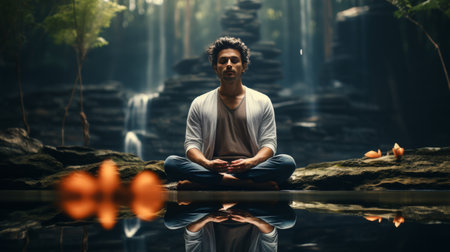 A man practicing mindfulness and meditation in a peaceful natural environment