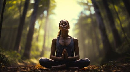 Generative AI A yoga session taking place on a tranquil forest clearing, surrounded by the gentle sounds of nature.
