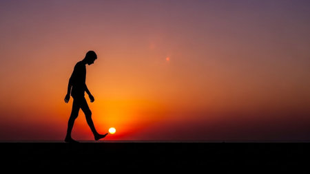 Silhouette of a man walking in the sunset. The concept of active lifestyle.