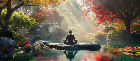 Tranquil Serenity: Meditative Practice in a Beautiful and Peaceful Setting. Generative AI