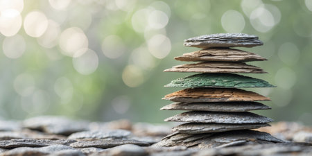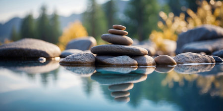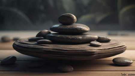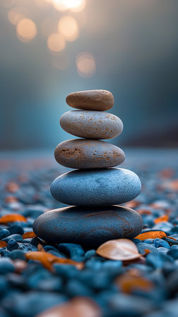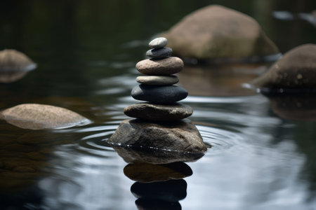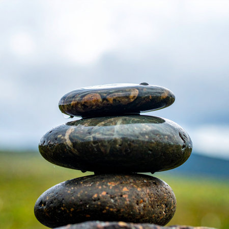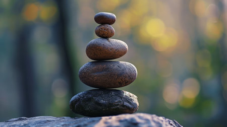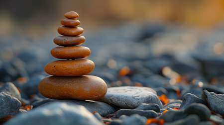 An AI generated illustration of a stack of pebbles against a bokeh background