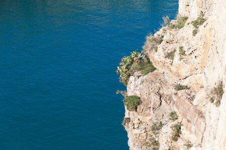 green bush on a rocky cliff by the sea. Shot in Capo Caccia, Sardinia