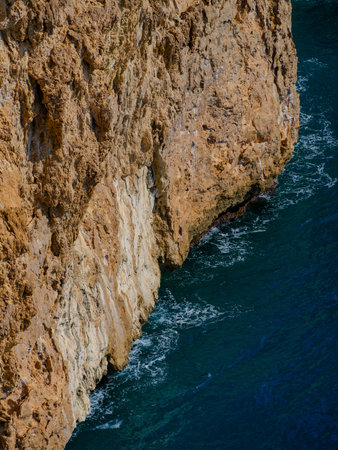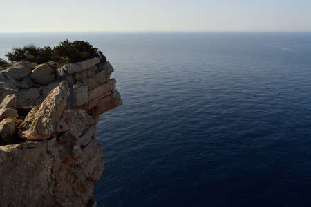 Photography of a cliff in the mediterranean sea. Located in Catalonia, between Vilanova i la Geltrú and Sitges, near Barcelona. Close to this cliff we can find a very famous nudist gay beach.