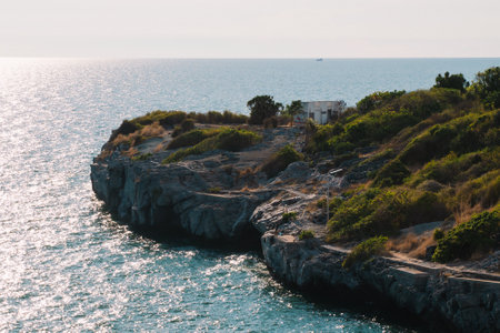 Beautiful sea coast with cold waters washing calm rocks of southern Italy