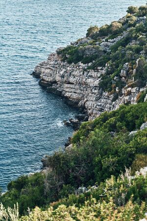 Coastal cliffs of limestone. The coast of the Mediterranean Sea in Turkey.