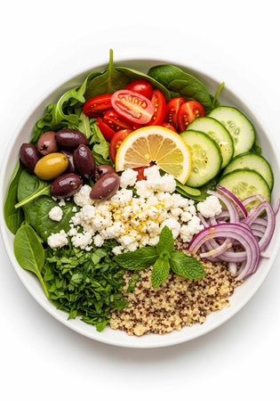 Tabbouleh salad with quinoa, feta cheese, tomatoes, cucumbers and olives