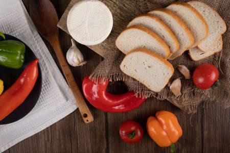 White sliced bread with cheese and peppers