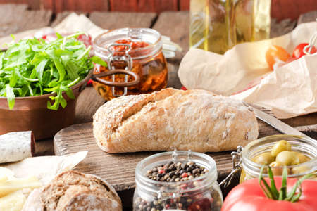 Tasty Italian food ingredients. Close up