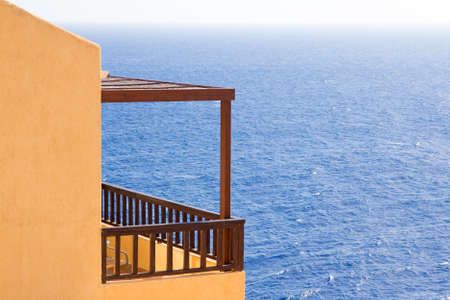 big balcony with beautiful sea view on Crete island in Greece