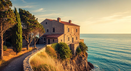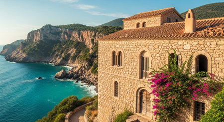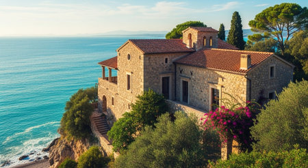 mediterranean style villa near the sea, created with generative ai