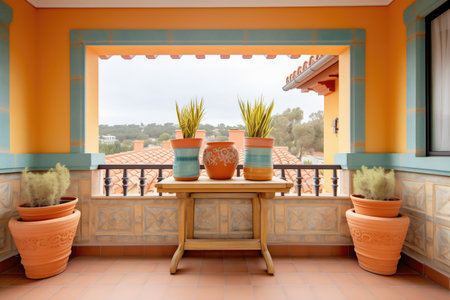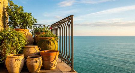 spanish villa balcony adorned with terracotta pottery