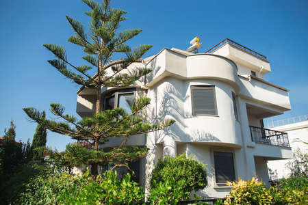 White mediterranean cottage with garden