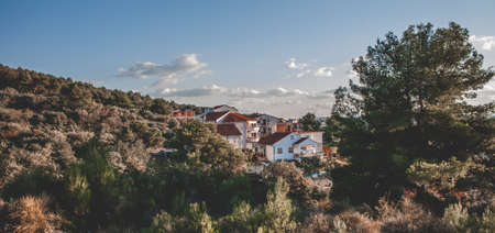 Panoramic view on a summer day with a blue sky at home in a Croatian city. Mountainous landscape. summer landscape