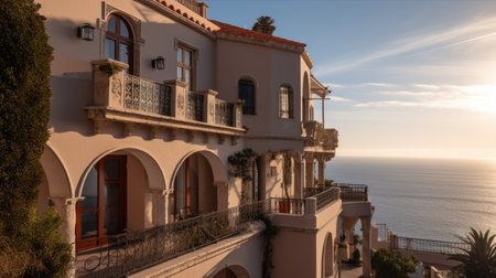 This captivating image showcases a charming house perched on a cliff, providing stunning views of the ocean., Scenic view in Cascais, Lisbon district, Portugal, AI Generated, AI Generated