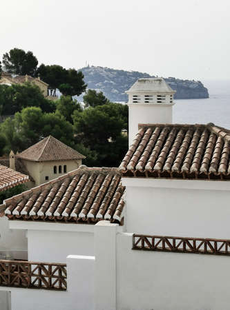 View of the tiled roofs of houses by the sea