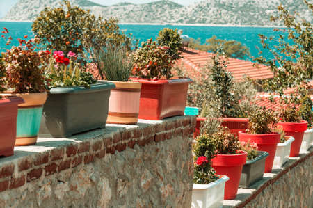 Beautiful terrace with sea view on the island of Rhodes, Greece