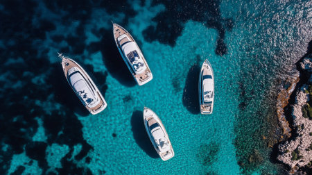 Aerial view of luxury yachts in turquoise water