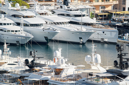 a lot of luxury yachts at the famous motorboat exhibition in the principality, the most expensive boats for the richest people around the world, yacht brokers