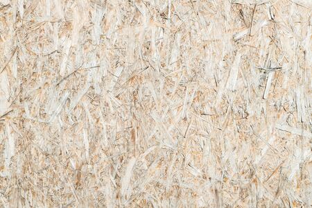 Pressed wooden shavings panel background, texture of oriented strand board, OSB.