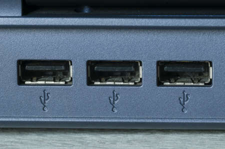 Detail of three computer USB ports
