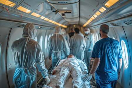 A military medical team prepares for a rescue operation inside a high-tech transport base, showcasing advanced equipment and tactical readiness for emergency response.
