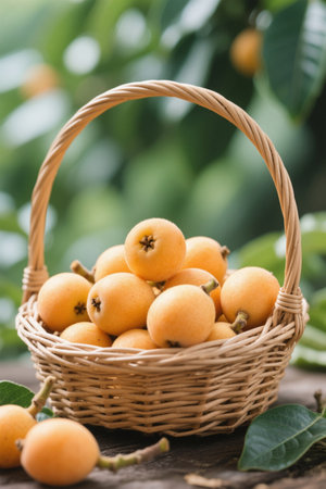 Ripe yellow loquats in bamboo baskets