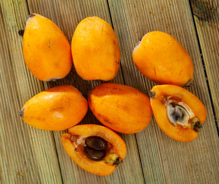 loquats on wooden background