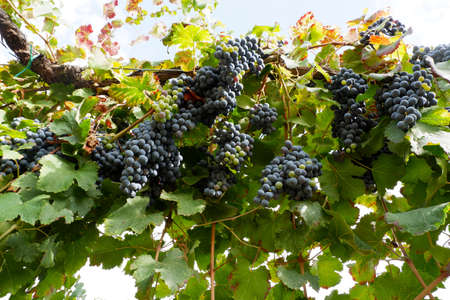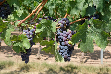 Wine making and winery concept, Fresh grape bunches for making wine, at vineyard
