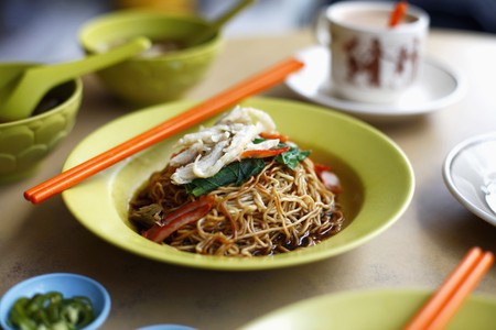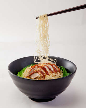 Wantan noodles, a Cantonese Chinese cuisine served dry with soy sauce and steamed chicken