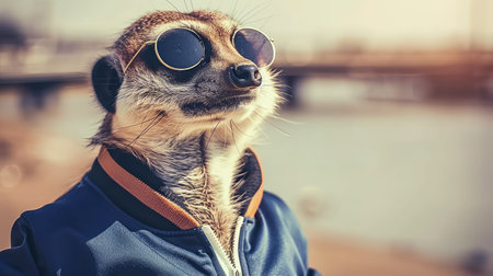 a meerkat dressed in a tracksuit, sporting an exquisite outfit as it stands confidently on both legs, showing a delightful blend of whimsy and style.