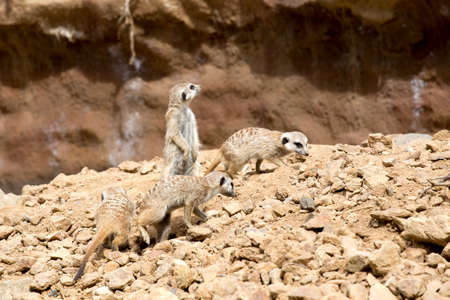 Meerkats in a zoo. Meerkat (Suricata suricatta)