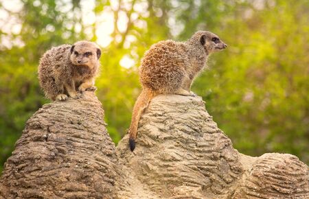 Two cute meerkats on the lookout in the zoo