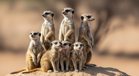 Creative animal concept. Meerkat Group. AI, Generative AI.
