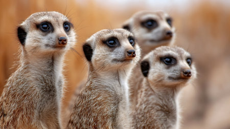 Four meerkats standing together, creating a captivating wildlife scene