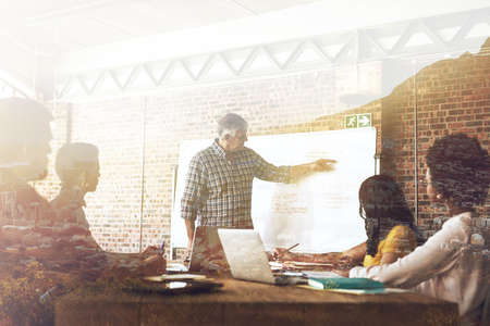 Combining their best ideas. Shot of a businessman giving a presentation to his colleagues in an office.